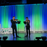 Figure 1. François Pineau-Benois (violin), Oliver Marin (viola) performing Jarno Vanhanen’s “Aurora Borealis” duet.