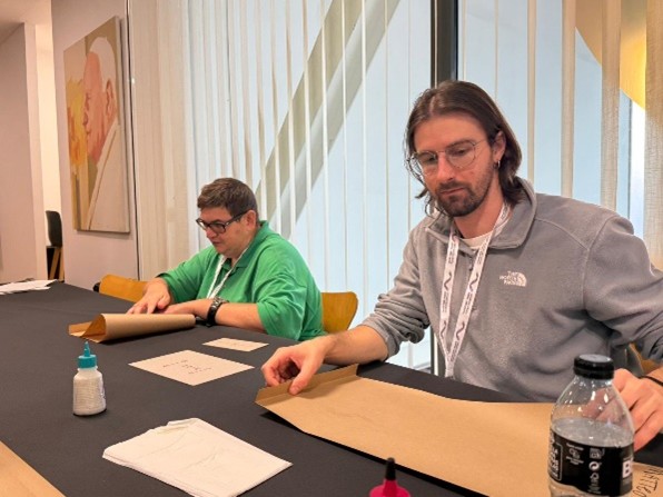 To put the cherry to the cake that QoMEX 2025 was, I got the wonderful present of together with Marta Orduna (Nokia, Spain) and María Nava (Fundación Juan XXIII, Spain) to organize a diversity and inclusion workshop in the Fundación Juan XXIII (https://qomex2025.itec.aau.at/workshop/ws-walking-in-their-shoes/). It took place on Friday the 3rd of October. The Fundación (https://www.fundacionjuanxxiii.org/ ) is an organization working for more than 55 years to promote the social and labor inclusion of people in situations of psychosocial vulnerability. With the help of their workers and users, we set up a workshop where our researchers had to switch the roles. Therefore, they became the participant of a “hands-on” experience guided by people with different abilities. The activity consisted of manufacturing paper bags with the help and guidance of the experts of the Paper Lovers project (https://www.fundacionjuanxxiii.org/nuestros-proyectos).